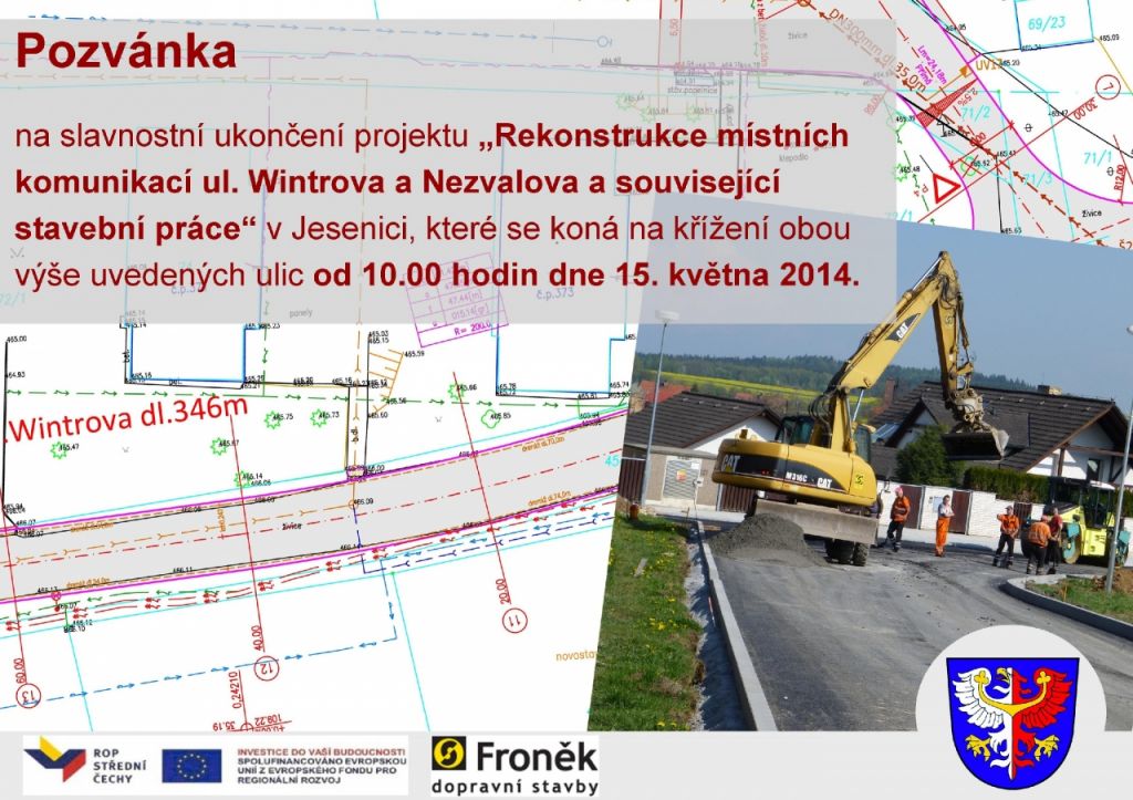V průběhu července 2013 obdrželo město Jesenice potěšující informaci, že projekt obsahující kompletní rekonstrukci ulic Wintrova a Nezvalova byl v rámci výzvy č. 68 dodatečně vybrán k financování z Regionálního operačního programu Střední Čechy.